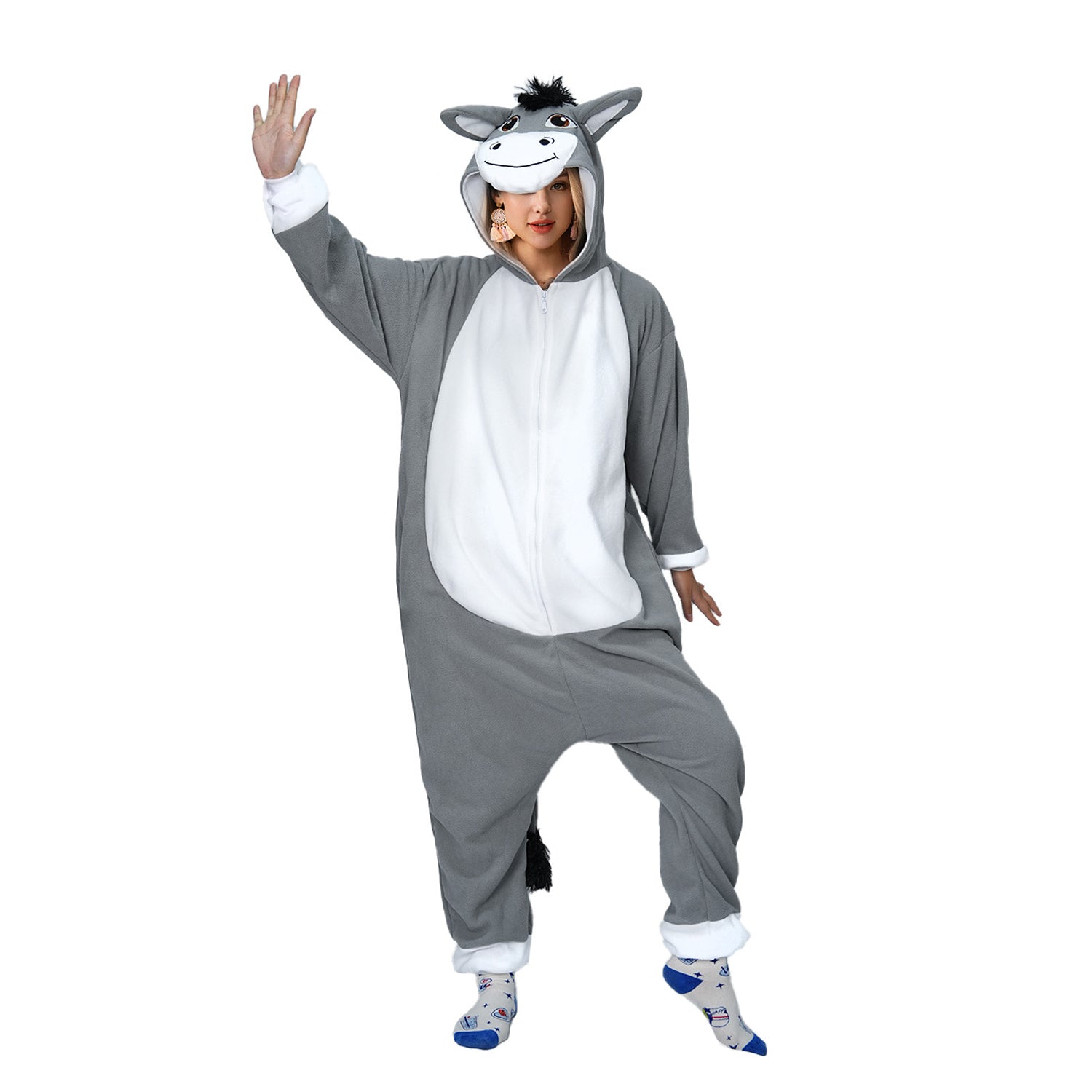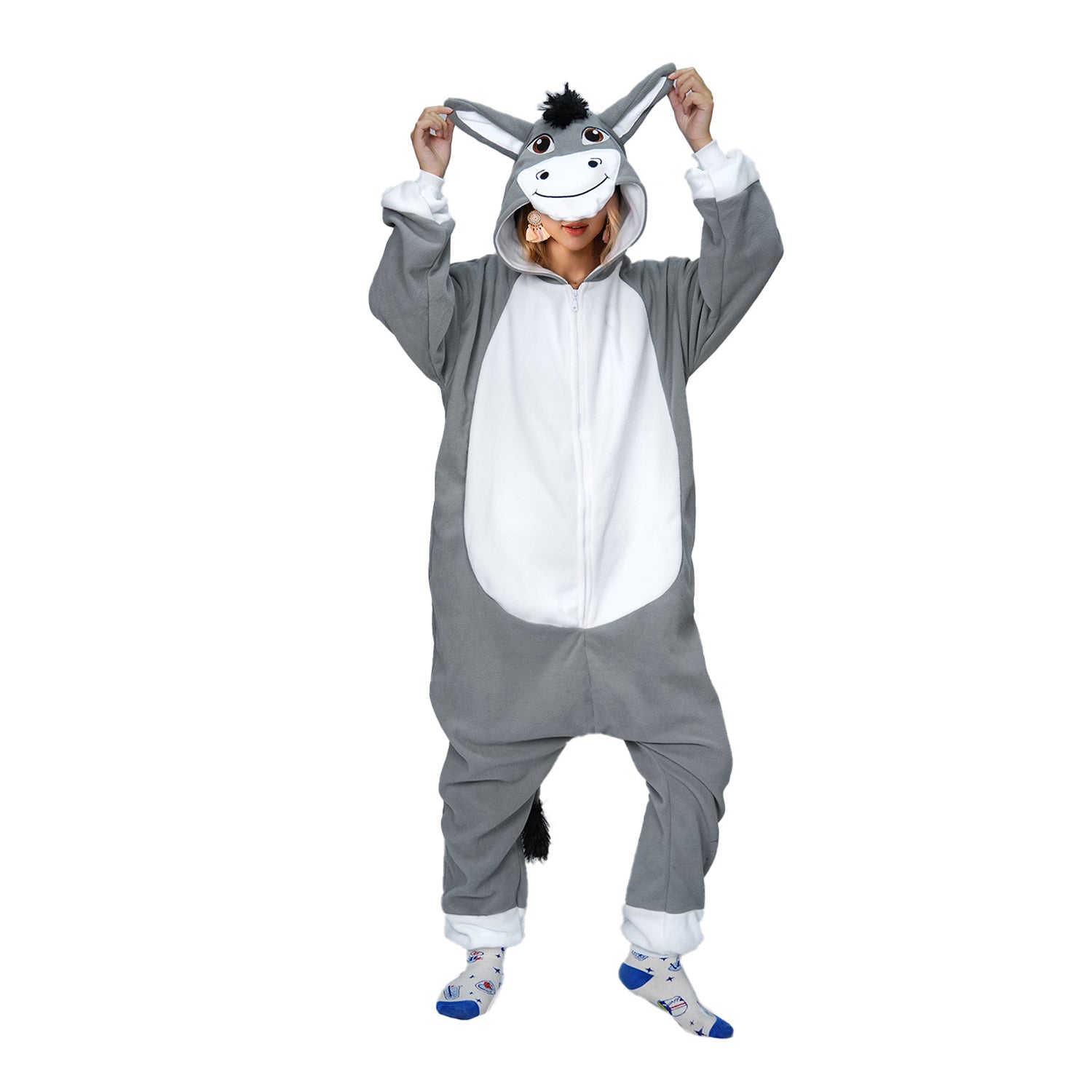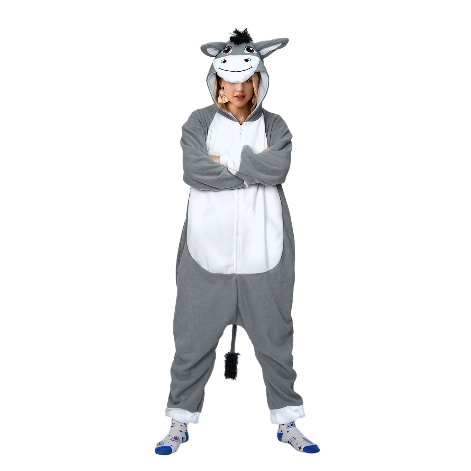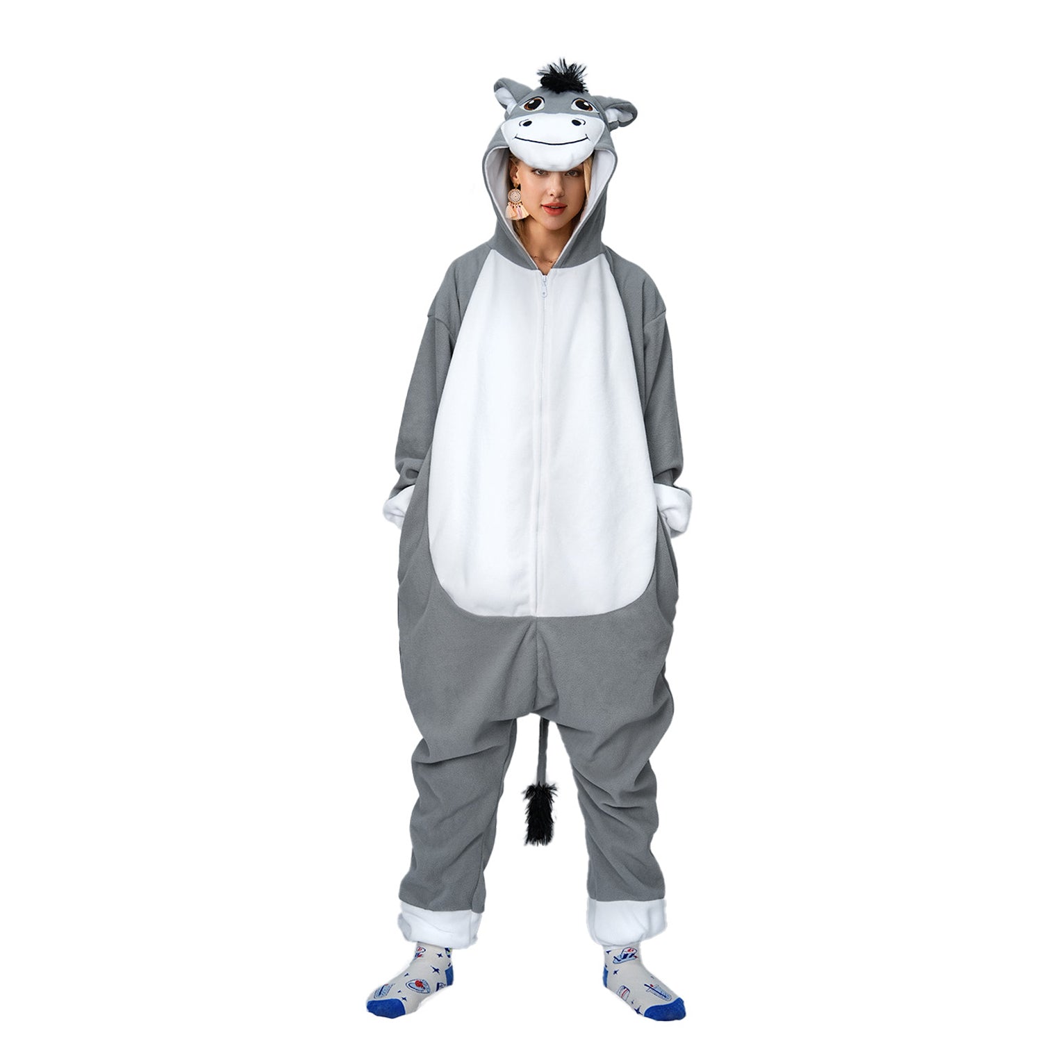 【Cozy Design】 The gray donkey onesie pajamas features zipper so that you can put it on and take it off easily. Side pockets make it easy to carry your wallet, keys and cell phone around with you. The loose fit is comfortable and won't restrict your movements,giving you the freedom when you sleeping dancing or performing.